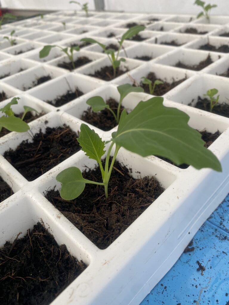 Cette semaine, du 9 au 15 février, la météo nous a rappelé que la nature a toujours le dernier mot ! Entre le froid persistant et les 24 mm de pluie venus s’ajouter aux 15 mm de la semaine précédente, les jardins sont littéralement gorgés d’eau. Impossible de semer en plein champ comme prévu… mais qu’importe, car sous serre, la magie opère toujours ! Voyez les plants de choux en illustration !