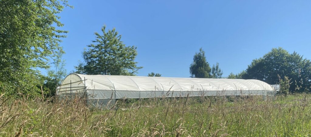 Ma serre, avec ses 20 mètres de long et 6 mètres de large, est divisée en cinq planches : quatre de 16 mètres et une de 20 mètres, chacune large de 70 centimètres. C’est un espace généreux, intégrant un espace pour les semis et autres préparations, de 16 m².